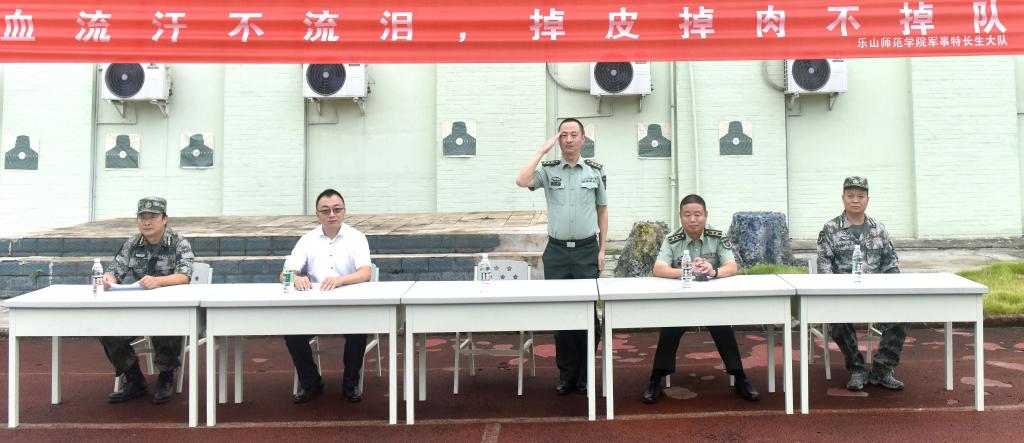 8月29日上午,乐山市市中区武装部部长何辉、学校党委武装保卫部部长贾洪鉴、乐山市市中区武装部副部长王静嘉、学校党委武装保卫部副部长梁光德一行莅临夹江训练基地检验我校2022年军训预任教官暑期集训成果。