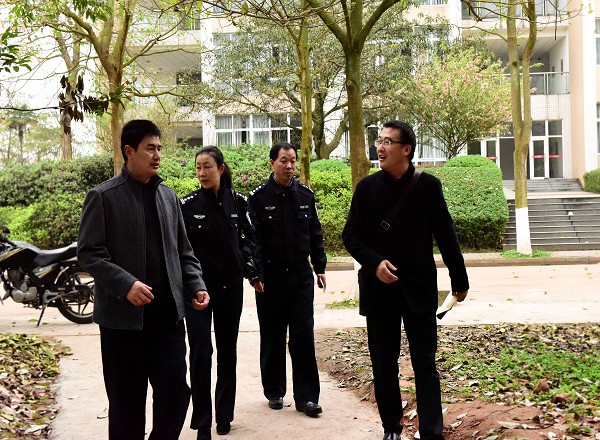 2015年3月19日上午,乐山市公安局政治部副主任杨开进、培训处处长、公安培训学校校长杨红卫、公安培训学校政委汪兴渠一行到我校考察调研公安培训学校(“战训合一”基地)场地租用事宜,保卫处处长、公安战训基地联络员余德刚陪同调研。