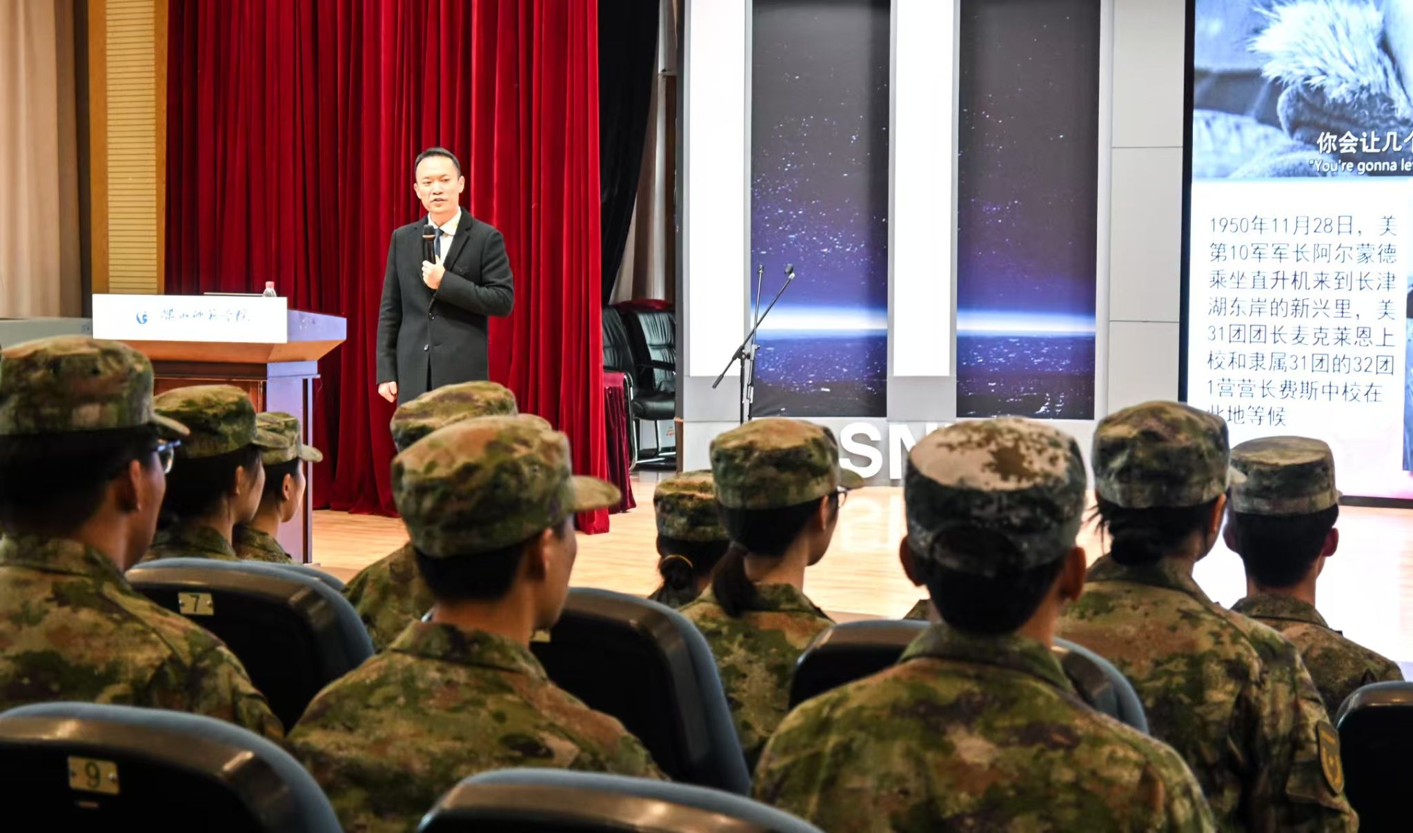 讲座中,赵晋聚焦国防建设与参军报国的同频共进展开宣讲。他从抗美援朝战争中那些鲜为人知的故事开始,回溯了人民军队从革命岁月到新时代的跨越式发展,系统阐述了我国国防实力稳步提升,武器装备体系迭代升级的时代进程,引导在场学子从历史变革中深刻体悟国防建设之于国家长治久安的战略意义与时代使命。他号召青年大学生踊跃参军入伍,践行报国初心;鼓励同学们在部队中钻研先进军事知识,锤炼过硬政治素养与战斗本领,在民族复兴征程中担负责任与使命。